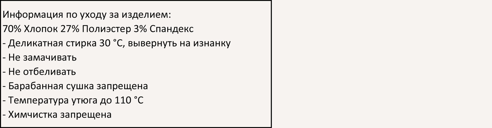 Материал: 70% хлопок, 27% полиэстер, 3% спандекс